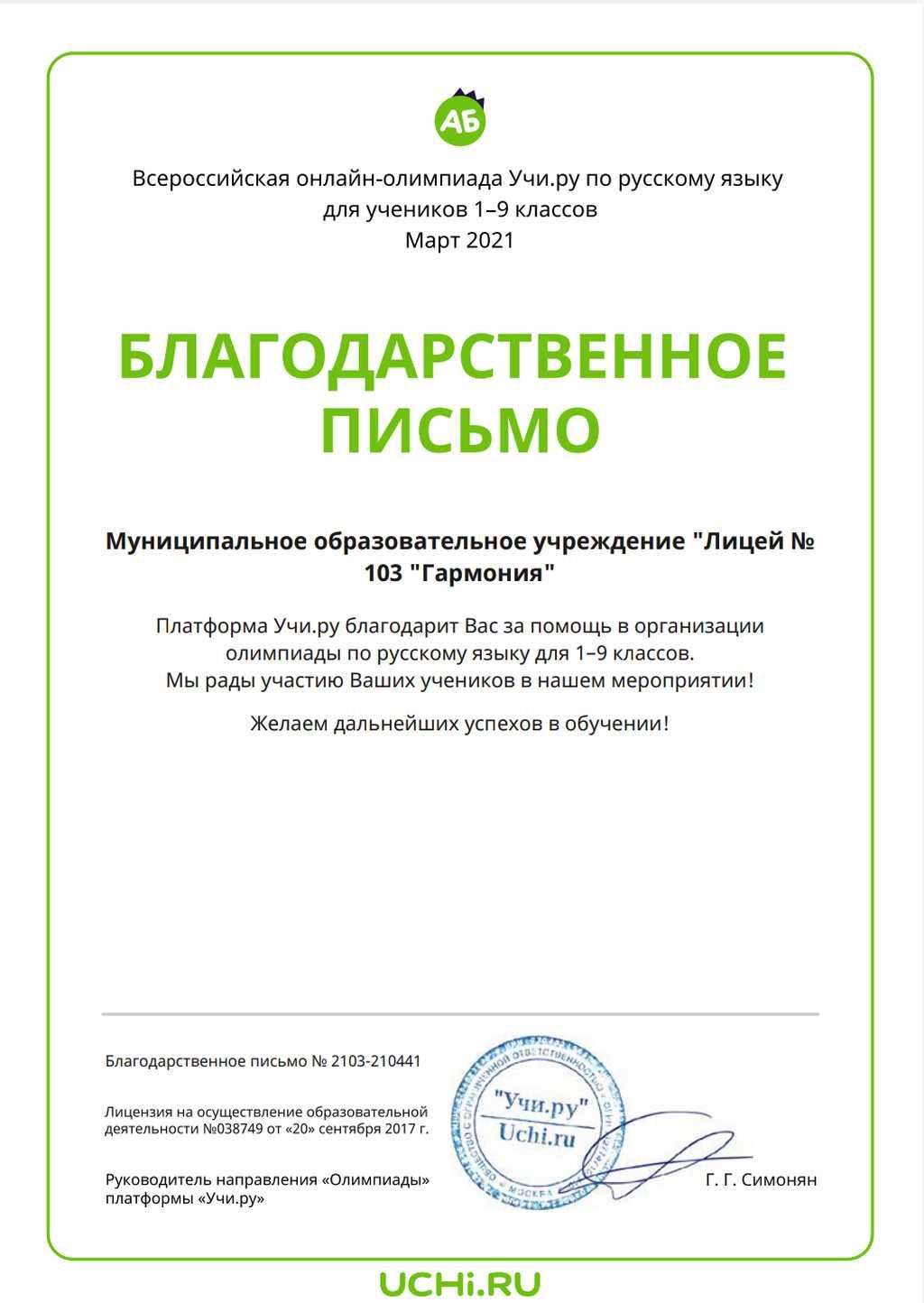 © Муниципальное бюджетное общеобразовательное учреждение Лицей №103 «Гармония», 2005-2025 г