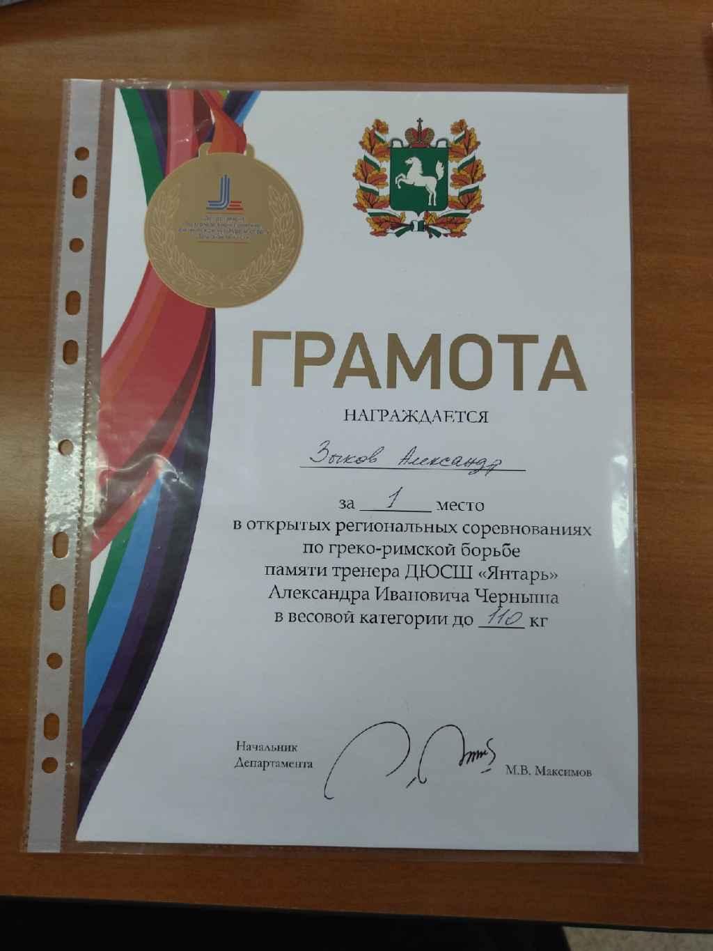 Поздравляем Александра с 1 местом в открытый региональных соревнованиях по греко-римской борьбе памяти тренера ДЮСШ "Янтарь" А.И. Черныша в весовой категории до 110 кг. Так держать!