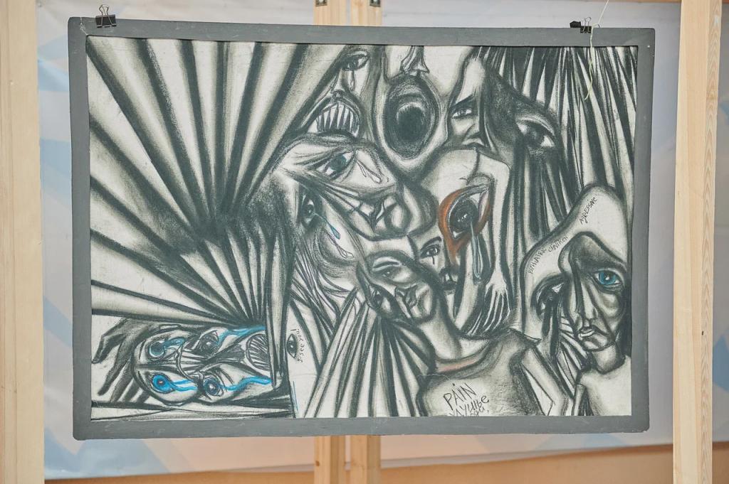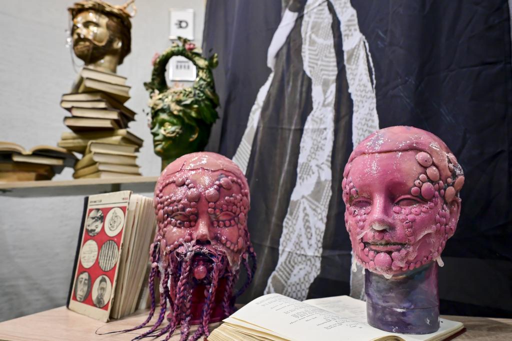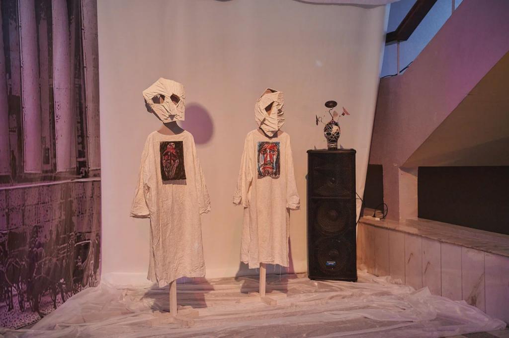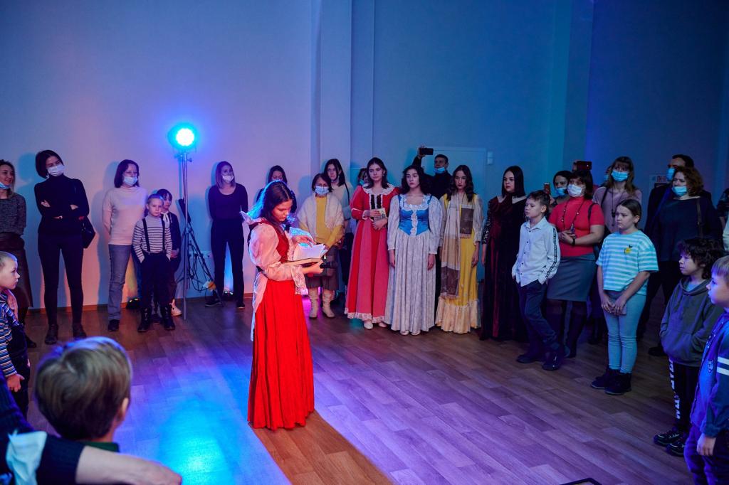 Далее участникам проекта было предложено посетить «Рейв-бал Достоевского», объединивший атмосферу бала XIX века и музыку современных подпольных вечеринок. Параллельно с этим состоялся показ коллекции костюмов «Теория хаоса» от студентки колледжа сферы услуг и предпринимательства Софии Троценко. А еще зрители могли посмотреть и оценить выставки и инсталляции от молодых художников: «Сад одиноких голов», «Боксы одиночества». Кстати, одним из авторов выставки является наш железногорский художник Тихон Мышкин.