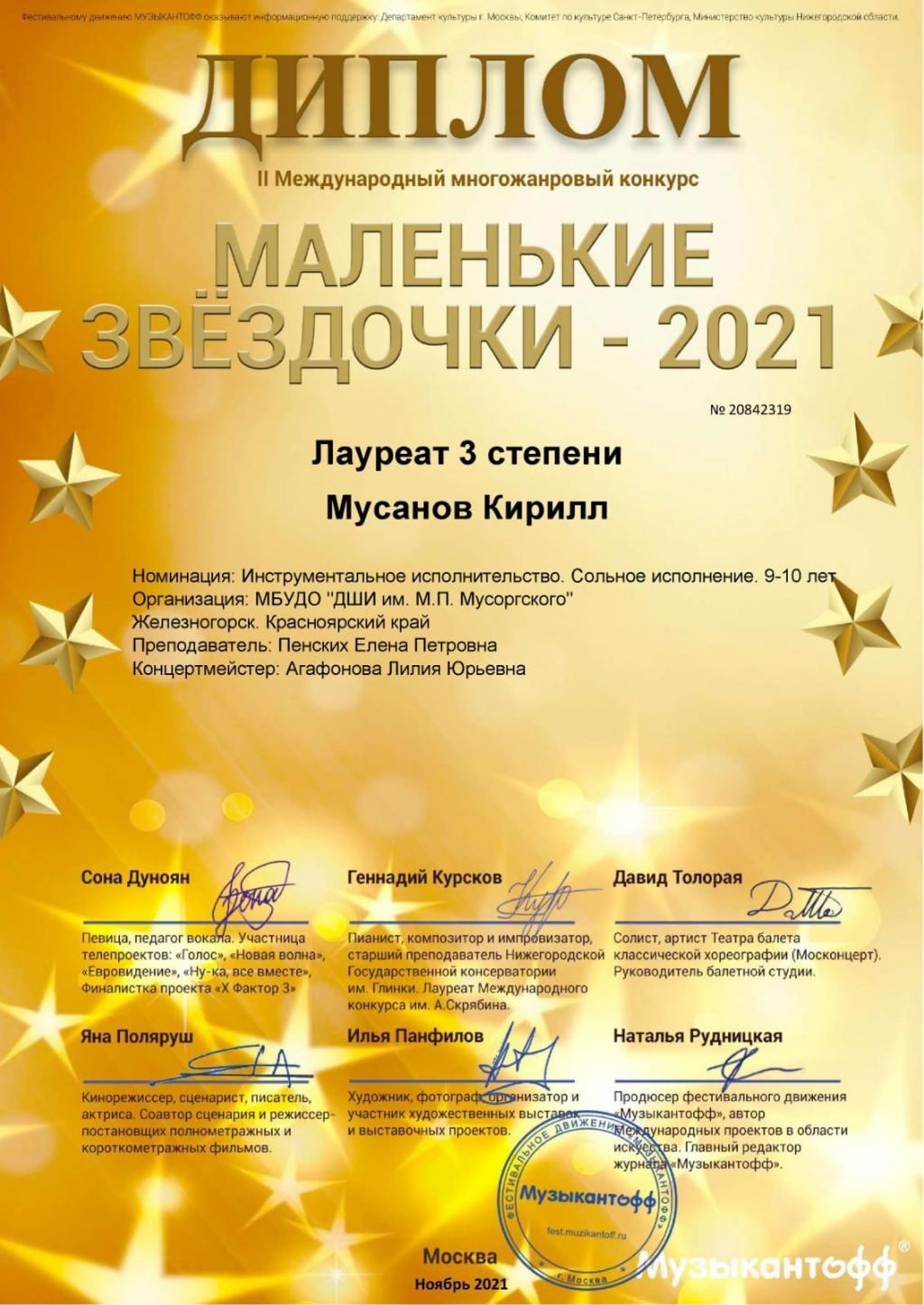 16.12.2021II Международный многожанровый конкурс "Маленькие звездочки - 2021"