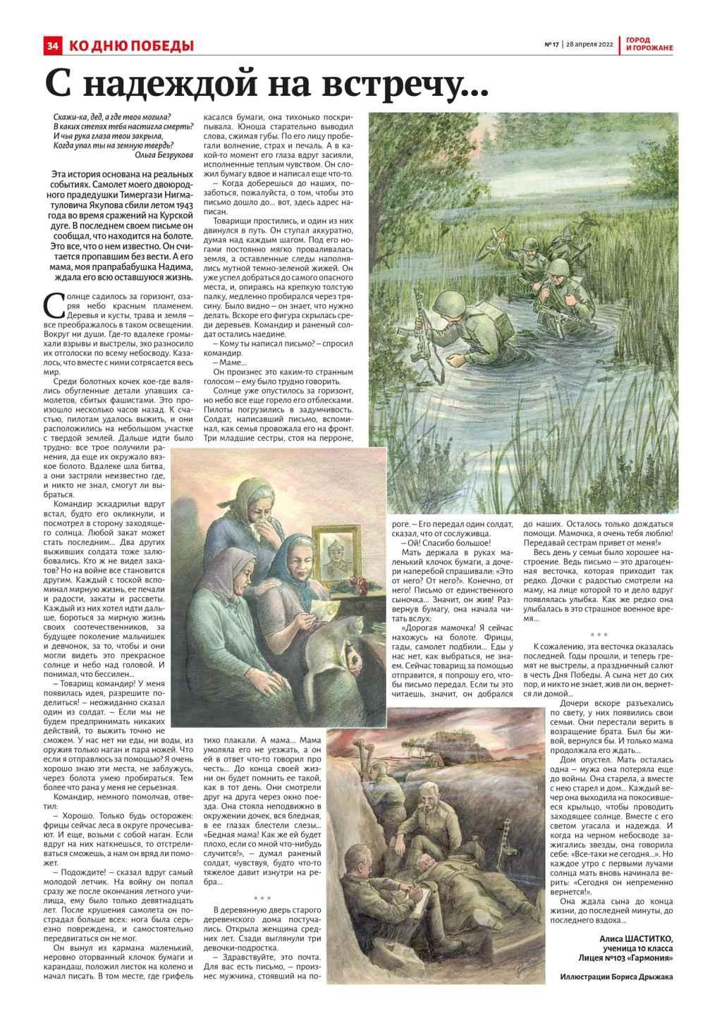 В газете «Город и горожане» от 28 апреля 2022 года опубликован рассказ Алисы Шаститко, основанный на реальных событиях.