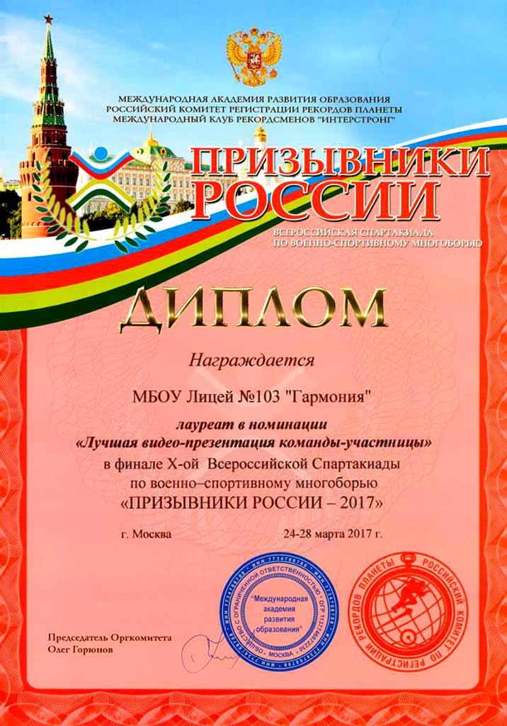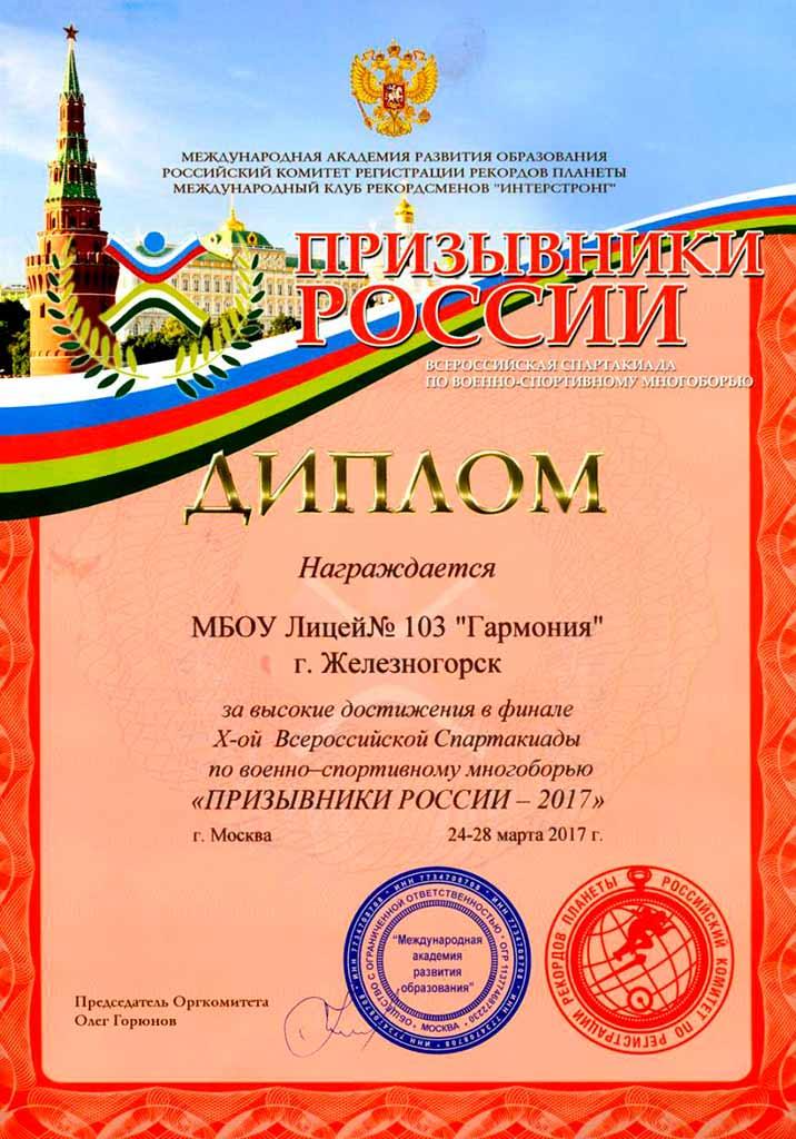 Наш Лицея стал луреатом в финале X Всероссийской Спартакиады по военно-спортивному многоборью «Призывники России - 2017», которая прошла в столице с 24 по 28 марта!