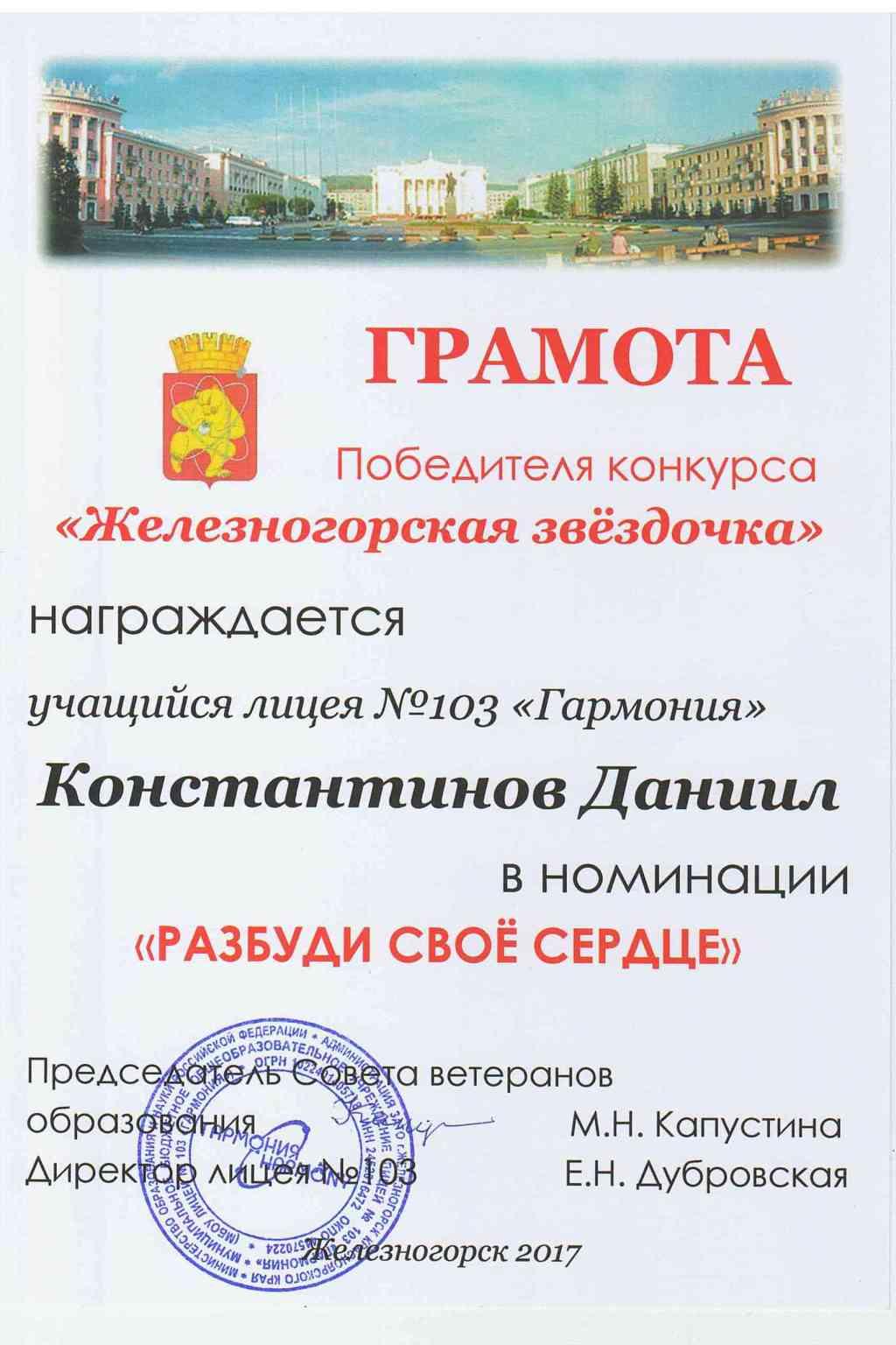 11.10.2017Учащиеся Лицея 103 стали победителями Городского конкурса «Железногорская звездочка»