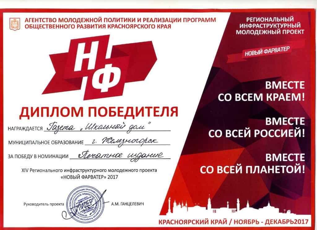 «Печатное издание» - 1 место (газета «Школьный дом»).