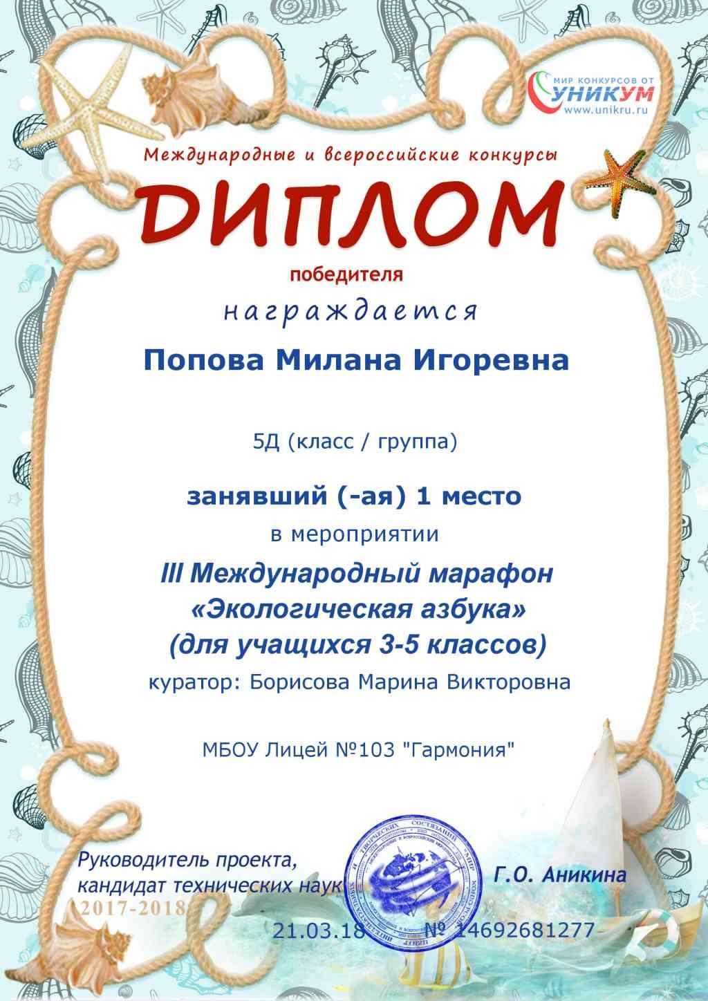 III Международный марафон «Экологическая азбука» (для учащихся 3-5 классов) - Победитель