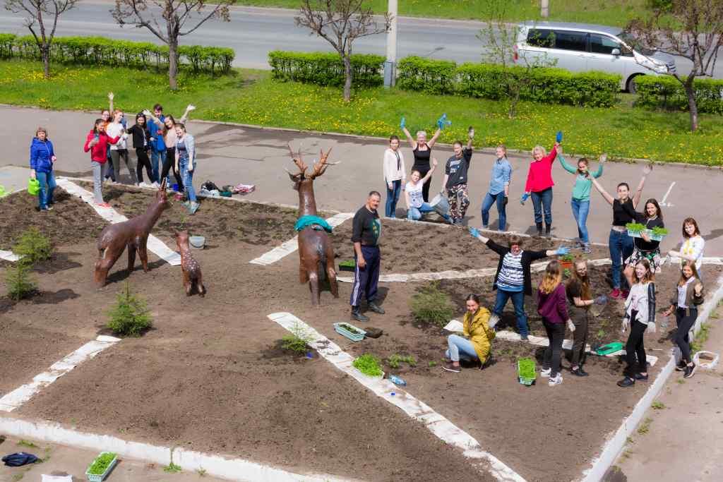 Чтобы завершить сказочную композицию – 29 мая на центральную клумбу высадился Цветочный десант. Очевидцы рассказывают, что в числе десантников были: самые красивые лицеистки и учителя, самые трудолюбивые лицеисты и мужчины Лицея 103 – всего 31 доброволец-волонтёр.