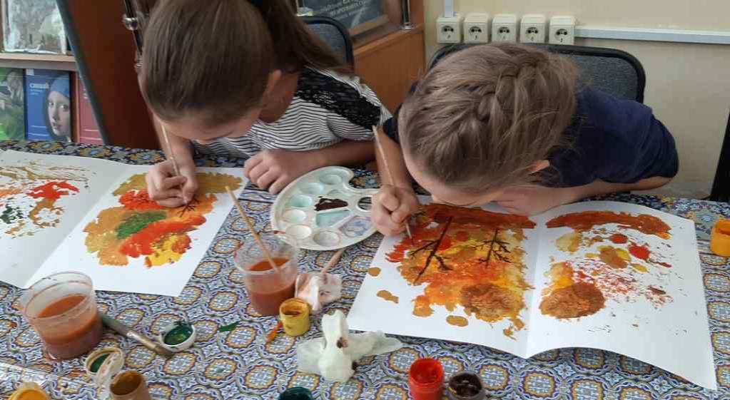 Чихватовой Ольгой Константиновной посетили творческую встречу «У мольберта». Ребята познакомились с книгами, посвященными искусству, отгадали загадки про кисти, краски, карандаши и жанры искусства. А также выполнили мастер-класс «Осенний пейзаж в технике монотипия». К ребятам присоединились их родители. Все получили массу приятных  эмоций. Результатом творчества стала яркая осенняя миниатюра.