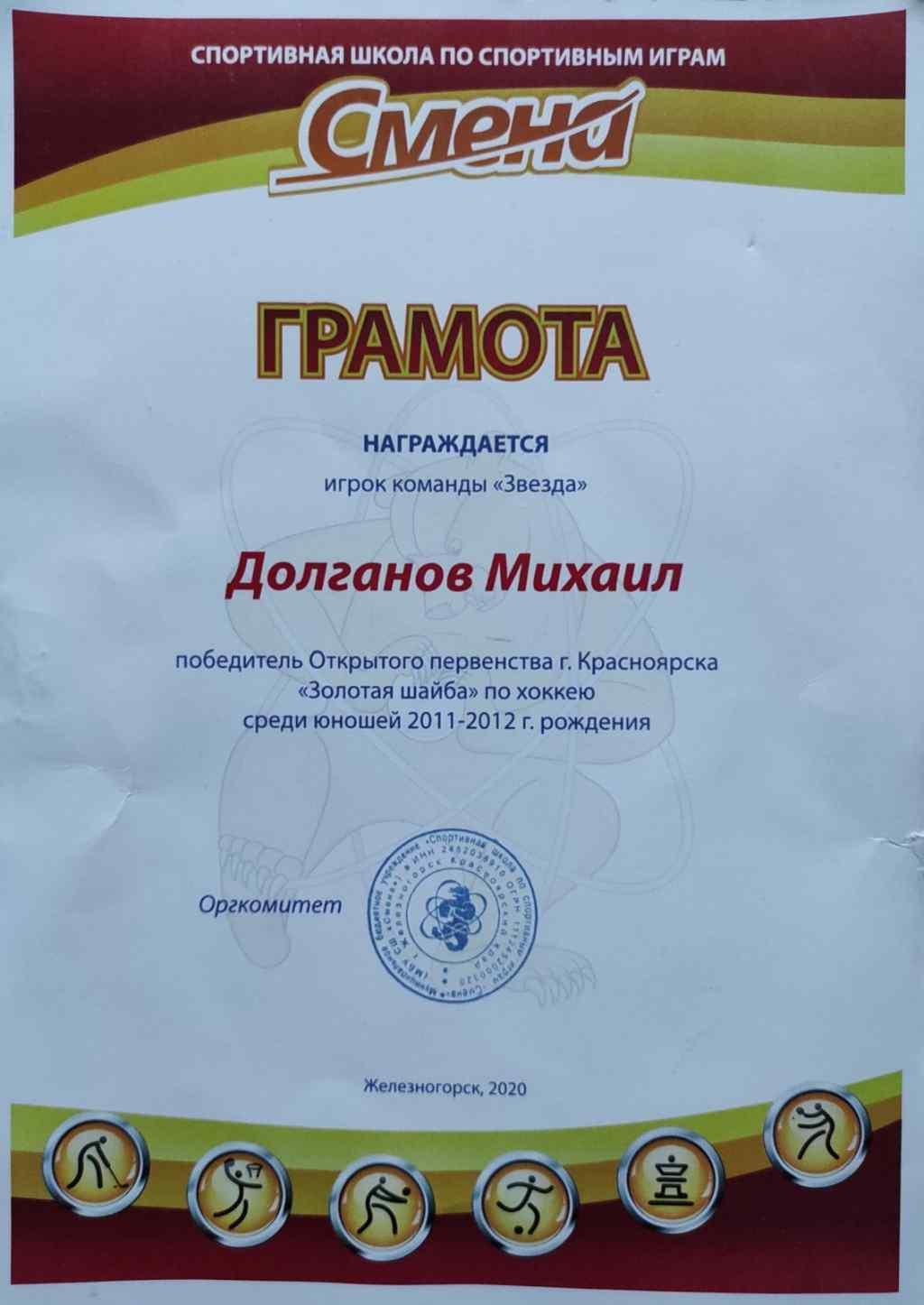 Поздравляем победителей Открытого первенства города Красноярска «Золотая шайба» по хоккею среди юношей 2011-2012 гг.р. учеников 2 «М» класса Михаила Долганова и Владимира Шурмелева. Кроме того, Михаил Долганов признан лучшим голкипером в своей возрастной группе.