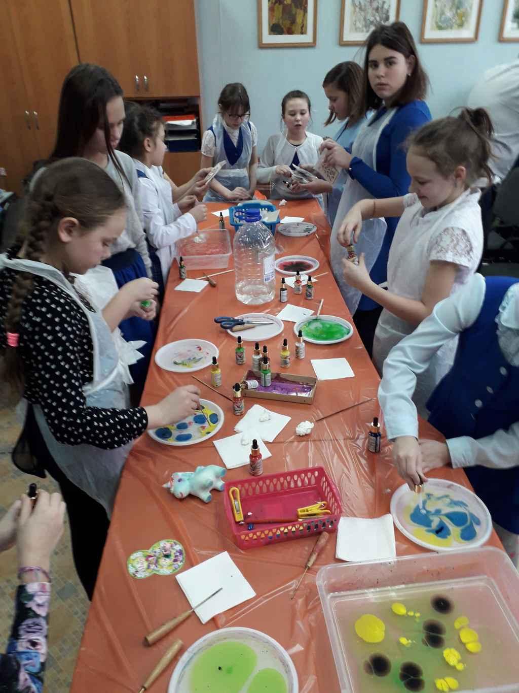 Ребята так же с удовольствием соревновались в богатырской силе, состязались в спортзале богатырским духом и ловкостью, смотрели тематические мультфильмы, изучали декоративную технику «Эбру», расписывали матрёшек и доски, занимались рукоделием, изготовили кукол-оберегов, играли в народные игры с «Красной горкой», слушали русские народные сказки, собирали мозаику и плели девичьи косы (отдельное спасибо волонтерам из 8 «Д»).