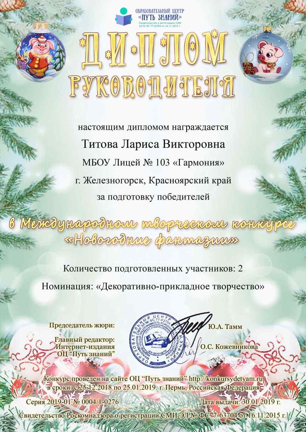«Новогодние фантазии», в котором приняли участие наши лицеиты под руководством Титовой Ларисы Викторовны и Чихватовой Ольги Константиновны.
