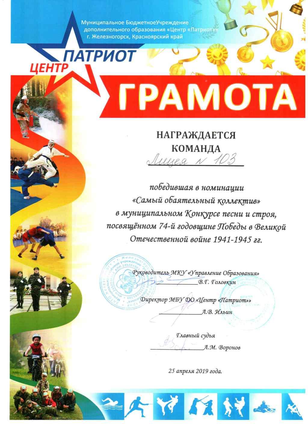 25 апреля состоялся городской Конкурс песни и строя, посвящённый 74 й годовщине Великой победы.