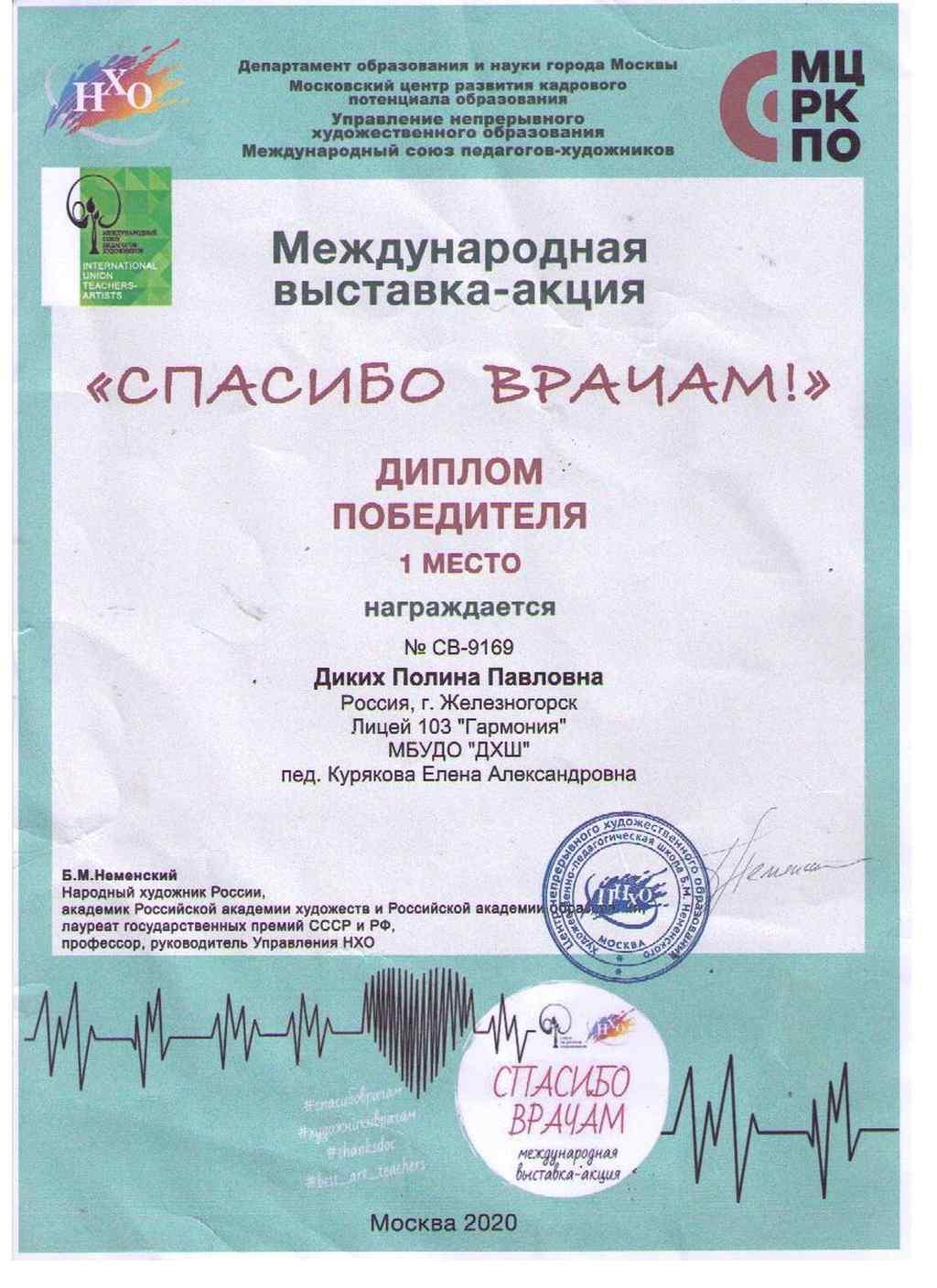 27.01.2021Полина Диких стала победителем международной выставки-акции «Спасибо врачам!»