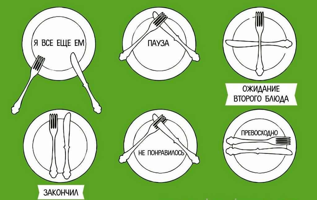 И кстати, вот правильные ответы на вопросы о нормах этикета. Для выражения благодарности, конечно, следует использовать слова «спасибо» и «благодарю». Если юноша видит, что дама несет тяжелую сумку, безусловно, ему подобает вежливо предложить свою помощь. Любой телефонный разговор воспитанный человек начнет с приветствия и извинения за беспокойство. Что касается поведения на лестнице: мужчина всегда должен идти на ступеньку впереди женщины, вверх - он предлагает руку для опоры, вниз - поддерживает даму «под локоток». Кроме того, идущему впереди человеку удобнее открывать и придерживать тяжелые двери. Ну а за обедом нужно кушать аккуратно и не торопясь, пользоваться салфеткой. А подсказку о том, что означают положения приборов на тарелке, смотрите ниже.